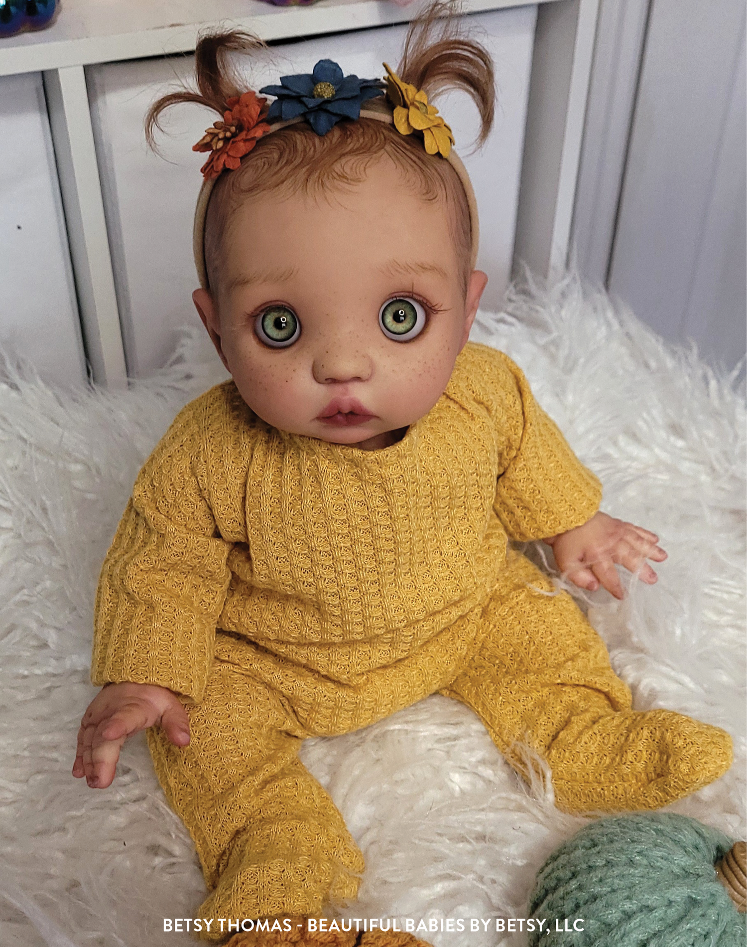 Reborns presented as a mobile baby, toddler, or older child. These reborns are generally open-eyed and may be shown sitting, standing, playing, or interacting with their environment. Body proportions may still be full but are more defined. Hair is often thicker or longer and may be styled. Clothing should reflect age, movement, and personality.