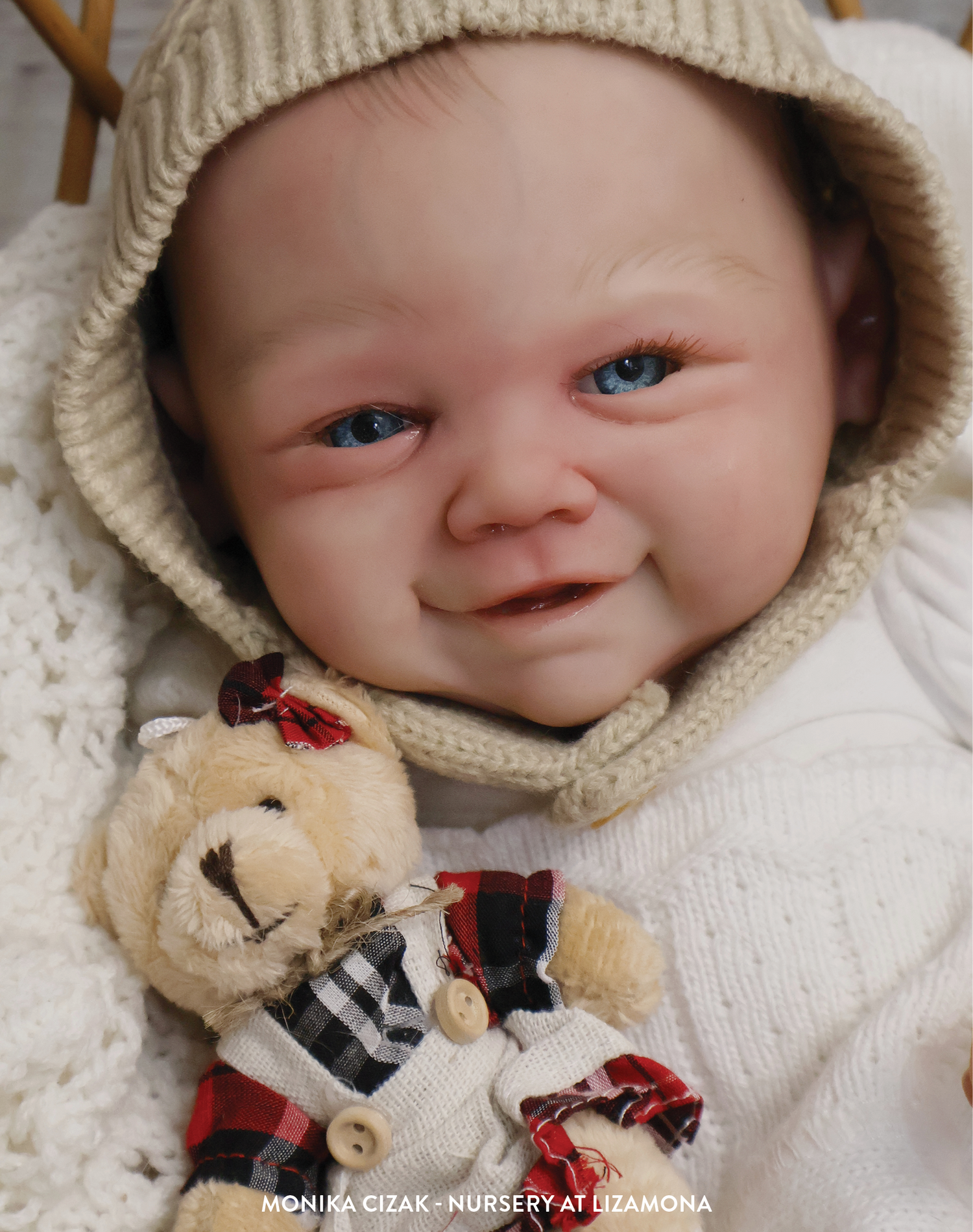 Reborns presented as an infant beyond the newborn stage but not yet mobile. These reborns may be sleeping but are often shown with open, alert, or smiling expressions. They usually have a fuller body shape, less mottling, and infant-appropriate styling such as baby clothing and simple props. Overall size does not matter — the reborn must be clearly presented as an infant rather than a newborn or toddler. Visual age: Approximately 2 to 6 months old.